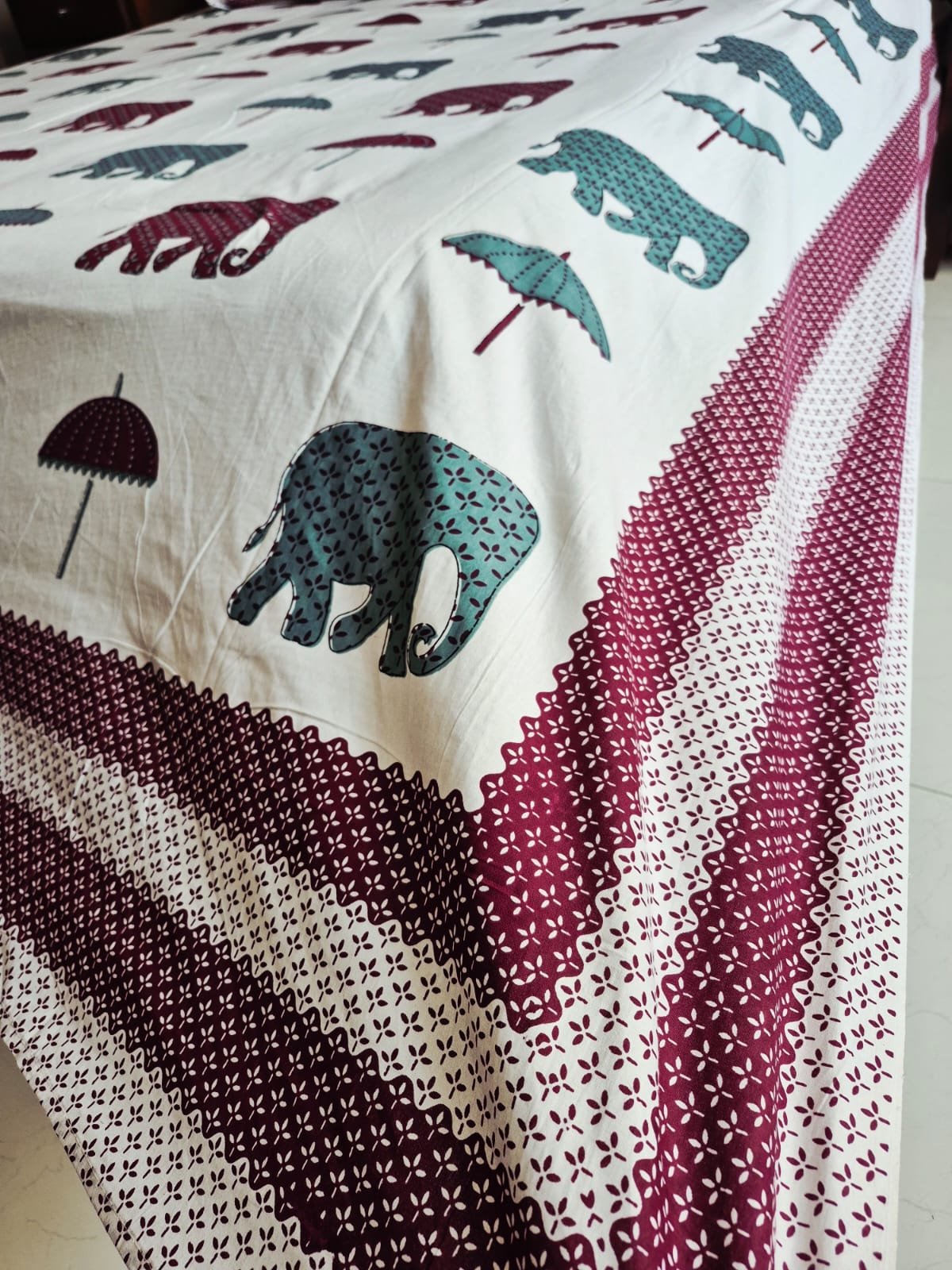 The design flows gracefully across the fabric, creating a balanced and harmonious presence that complements both modern and traditional interiors. Subtle detailing and carefully coordinated accents lend a refined finish, allowing the bedsheet to become a part of your space rather than overpower it. Each element is placed with intention, reflecting the quiet artistry of Jaipur’s long-standing textile heritage.