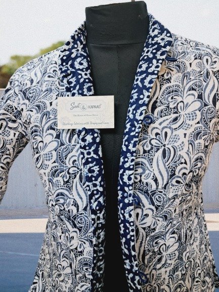 A beautifully crafted Jaipuri quilted reversible jacket made from soft cotton, offering comfort, warmth, and timeless style. Designed for versatile wear, it features two distinct looks in one—perfect for layering during mild winters and transitional seasons.